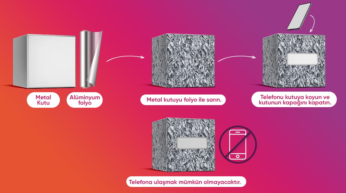 Covering the metal box with foil: The additional layer of aluminum foil serves as an added precaution to enhance the shielding effectiveness of the Faraday cage. While one layer of metal may provide some protection, adding extra layers can increase the cage's ability to block electromagnetic fields. Each layer acts as a barrier, reducing the likelihood of electromagnetic waves penetrating the cage and reaching the object inside. Additionally, wrapping the cellphone in foil provides a direct shield around the device, further minimizing the chances of it coming into contact with any stray electromagnetic signals that may bypass the outer layer of the cage.
