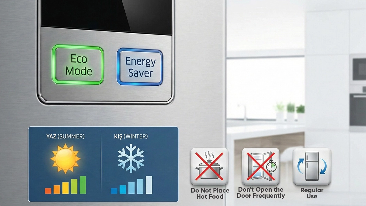 Many people use their refrigerator all year round without changing its settings. Their cooling needs increase in summer and drop considerably in winter. This means that you can use your refrigerator at a lower cooling setting in winter. You can use your refrigerator in eco or energy-saving modes except when temperatures are high. Maintaining and cleaning the refrigerator, not opening its door often and not putting hot food directly into the refrigerator also help reduce power consumption..webp)