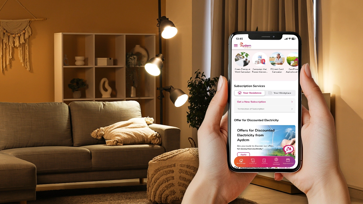 Aydem Perakende customers can use the online channel to complete the application process for a place with deactivated energy (i.e. if the previous user has left the place and deactivated the energy).