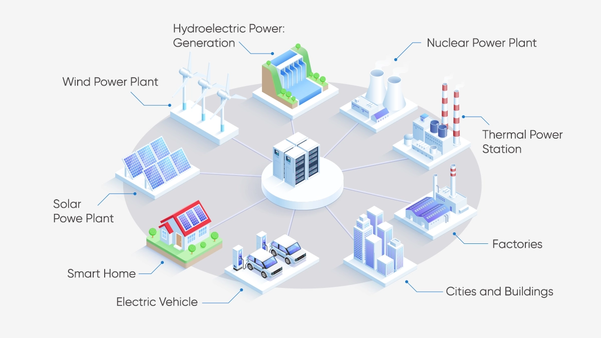 As part of smart grid technologies, IoT (Internet of Things) devices enable a continuous flow of data between parties. This technology helps the grid to react more smartly. All devices communicate with each other, improving energy efficiency and facilitating failure management.